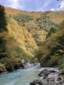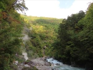 旅館の側を流れる黒薙川や山々の風景を楽しめる