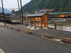 「駅の足湯」前は、綺麗な花が並んでいます。