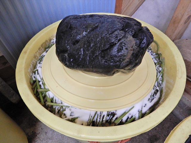 漬けてしばらくすると、水が出てくるのですが、その量は樽からあふれてしまうくらい。