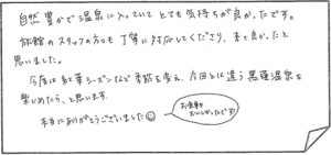 自然豊かで温泉に入っていてとても気持ちが良かったです。